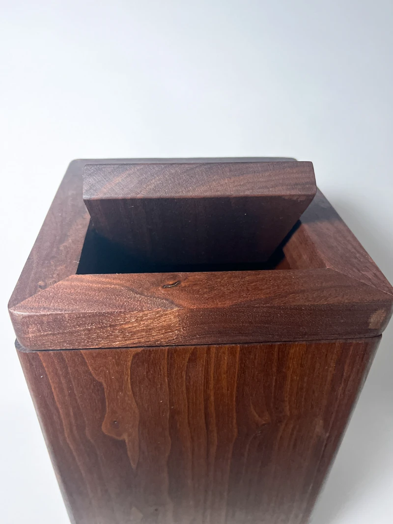 We don’t mass-produce. Each wood trash can bin is made by hand in our studio using responsibly sourced lumber and planet-safe finishes. We believe in slow-made goods that create lasting value.
