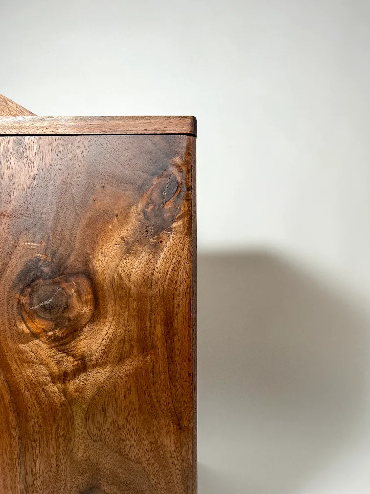 This bin is crafted from solid walnut, known for its gorgeous grain, strength, and classic beauty. It’s the kind of wood you find in heirloom furniture, and for good reason: it holds up. Each board is selected, cut, and joined with care, then hand-sanded and finished with a durable, eco-friendly tung oil seal that enhances its natural beauty while protecting it from daily wear.